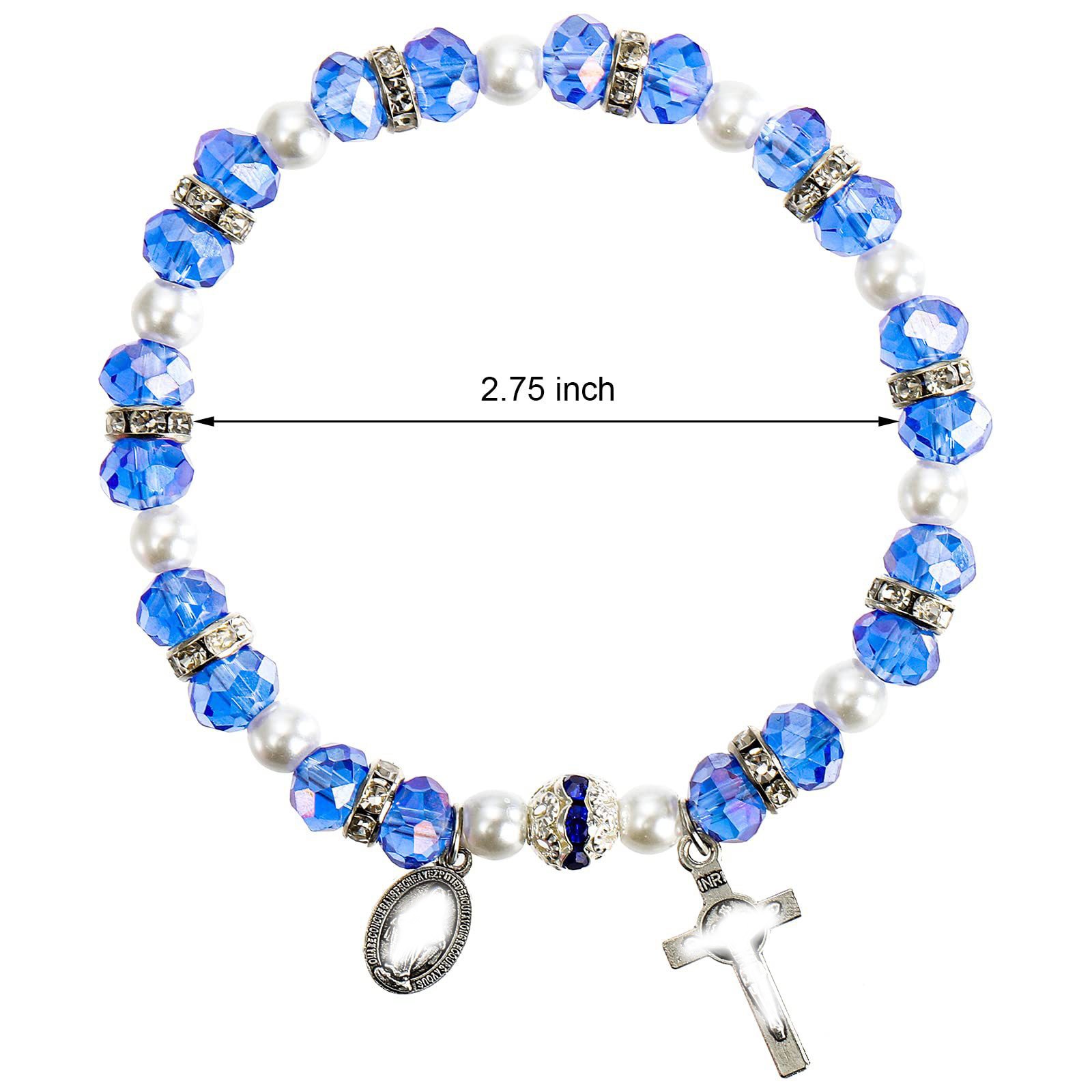 (天蓝)水晶手链十字架圣母手链弹力手环珠子水晶手串女