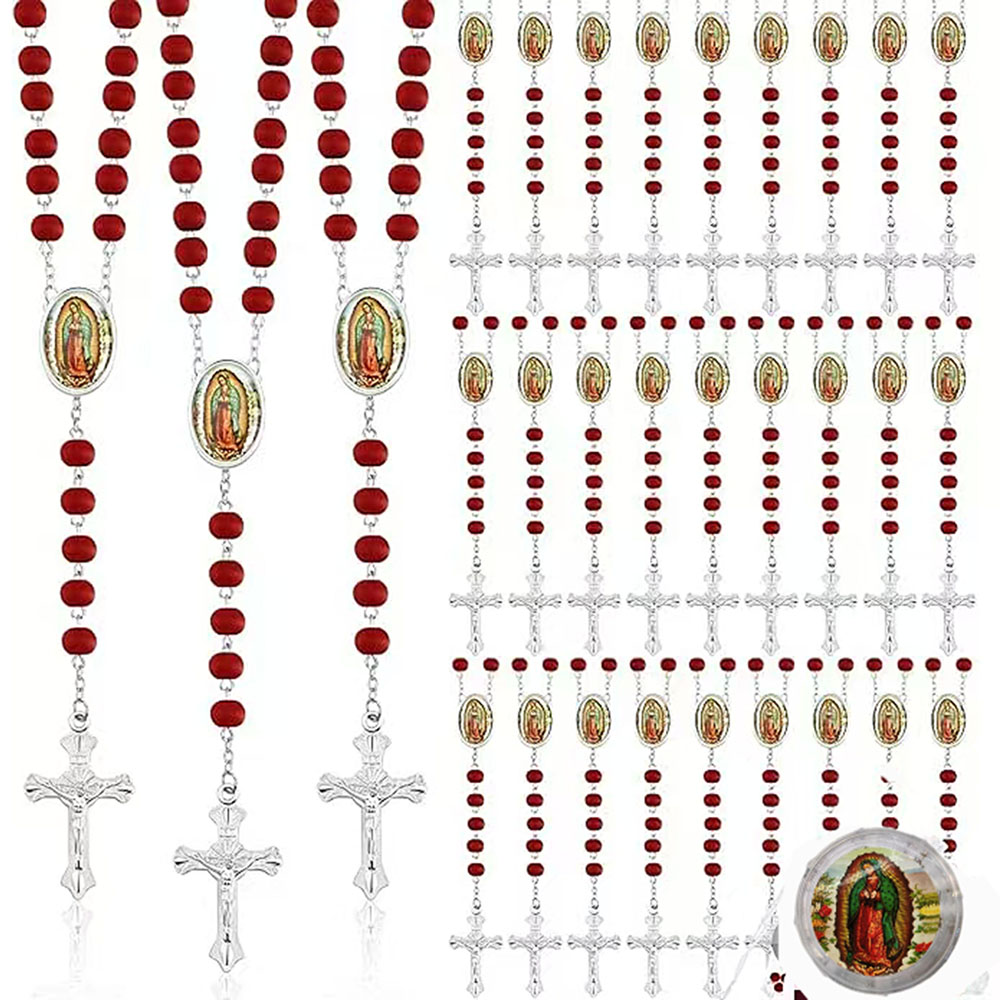 三色玫瑰香味木珠项链瓜德卢佩圣母十字架念珠项链