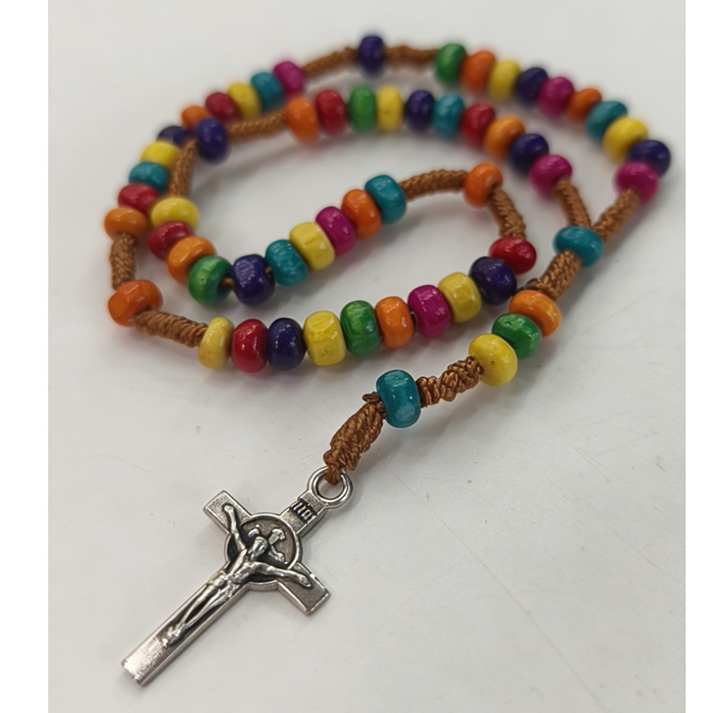 订做生产中 8mm松木珠连接十字架念珠项链饰品