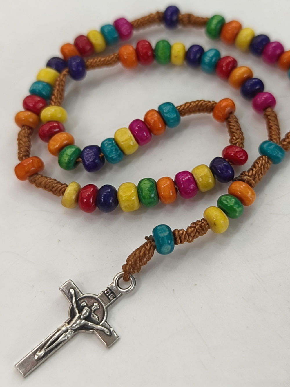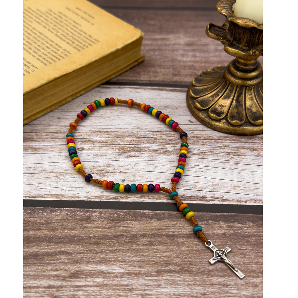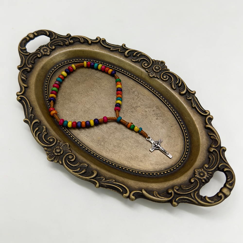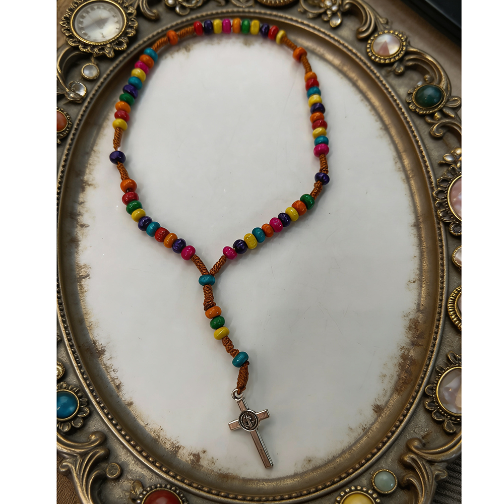 酒红木珠圣本笃念珠项链项链十字架饰品