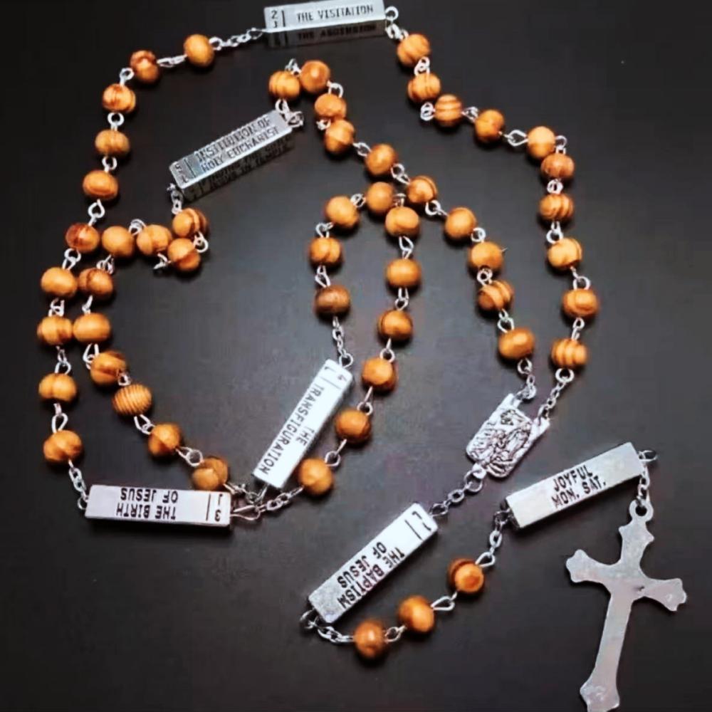 订做生产中 8mm松木珠连接十字架念珠项链饰品