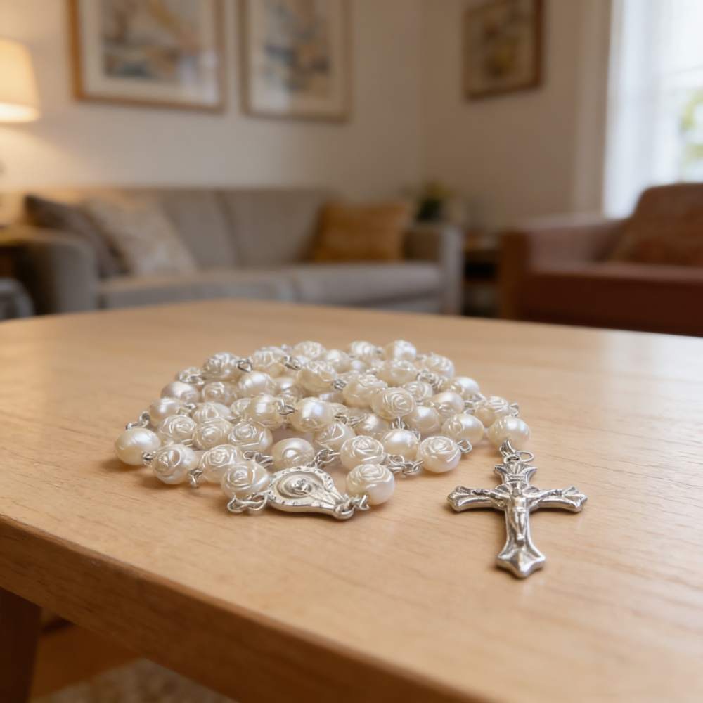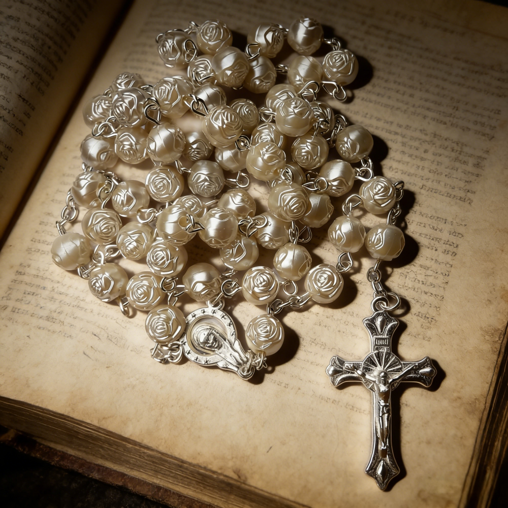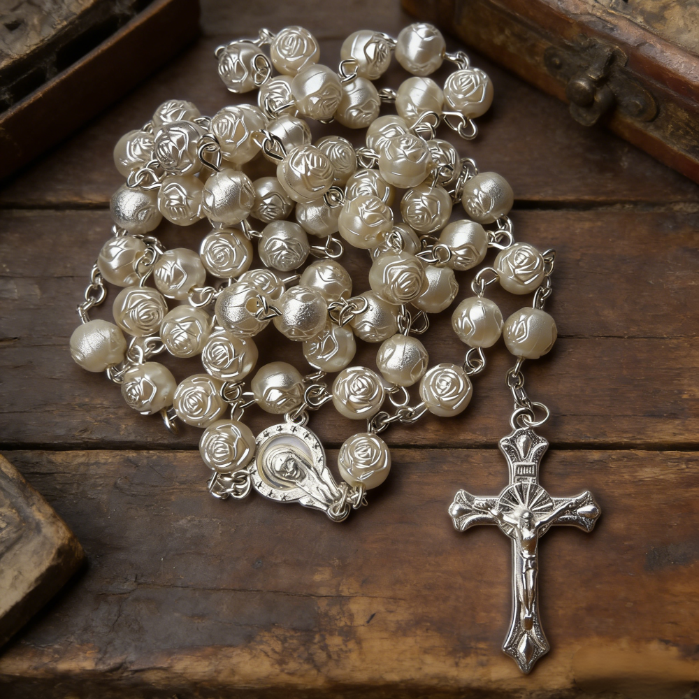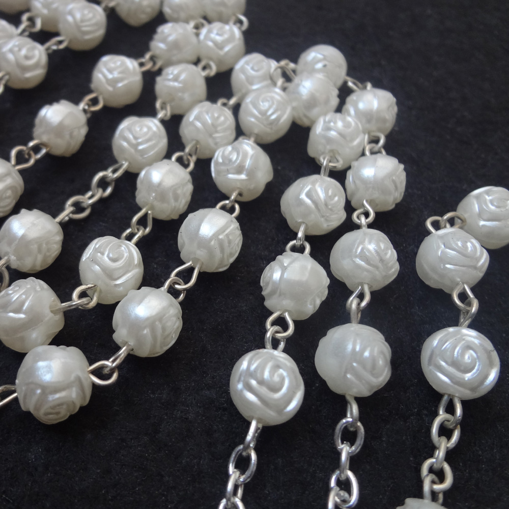 8mm白珍珠玫瑰珠念珠十字架项链礼品赠品毛衣链