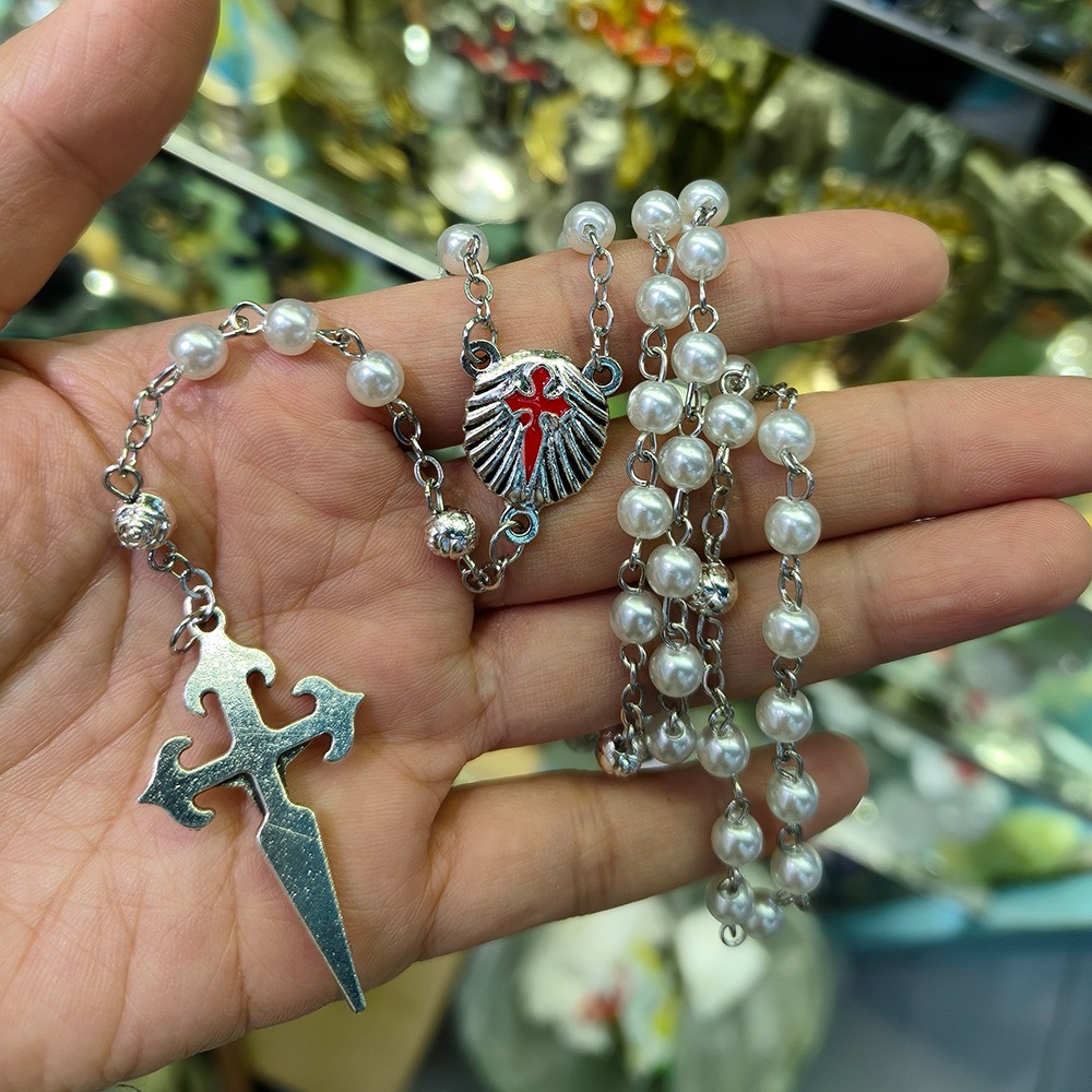 6mm珍珠念珠项链AW十字架西班牙ASTURIAS