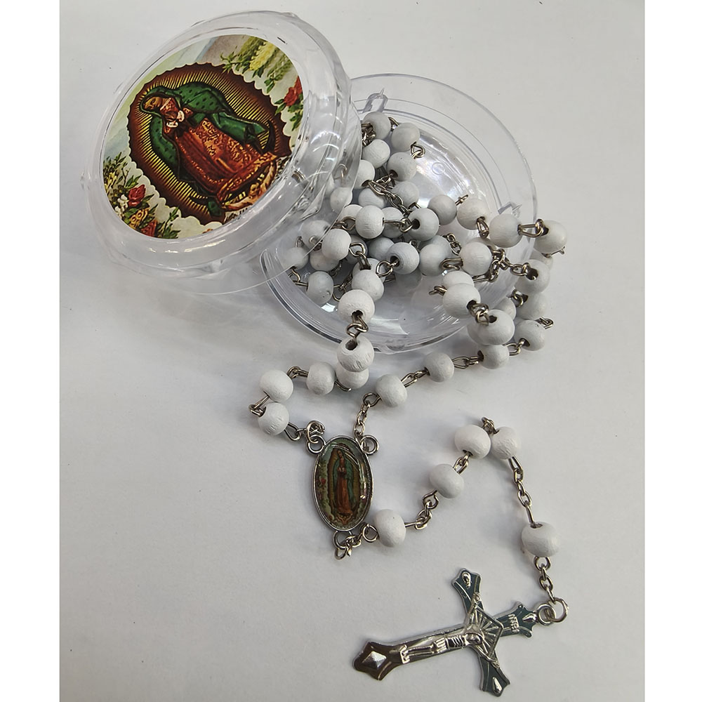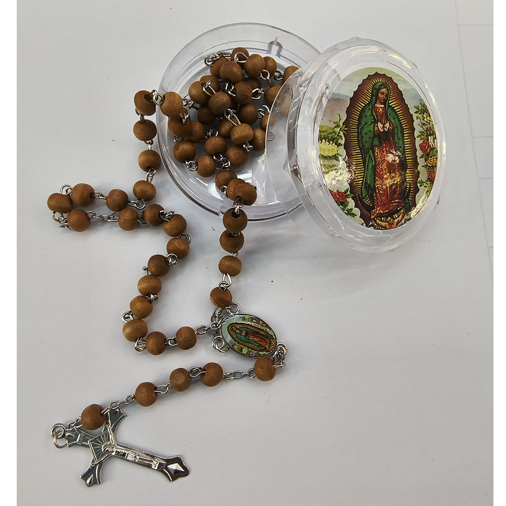 三色玫瑰香味木珠项链瓜德卢佩圣母十字架念珠项链