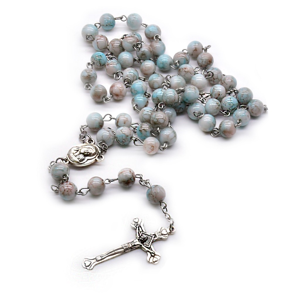跨境电商圣母宝蓝色念珠项链十字架饰品