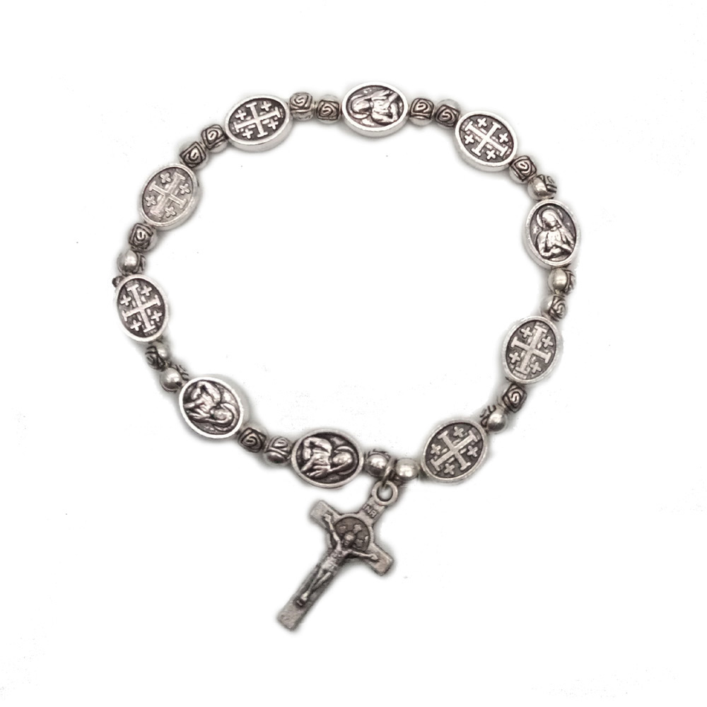 外贸工厂店金属串珠十字架手链念珠十字架手链弹力手饰饰品用品
