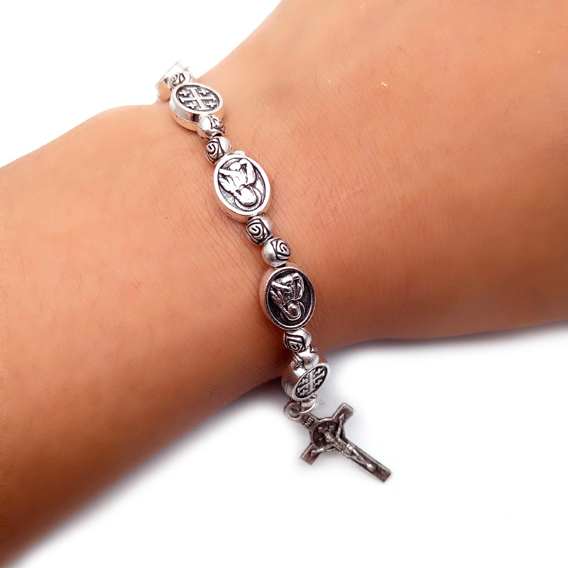 复古金属圣本笃念珠手链十字架手串手环弯针