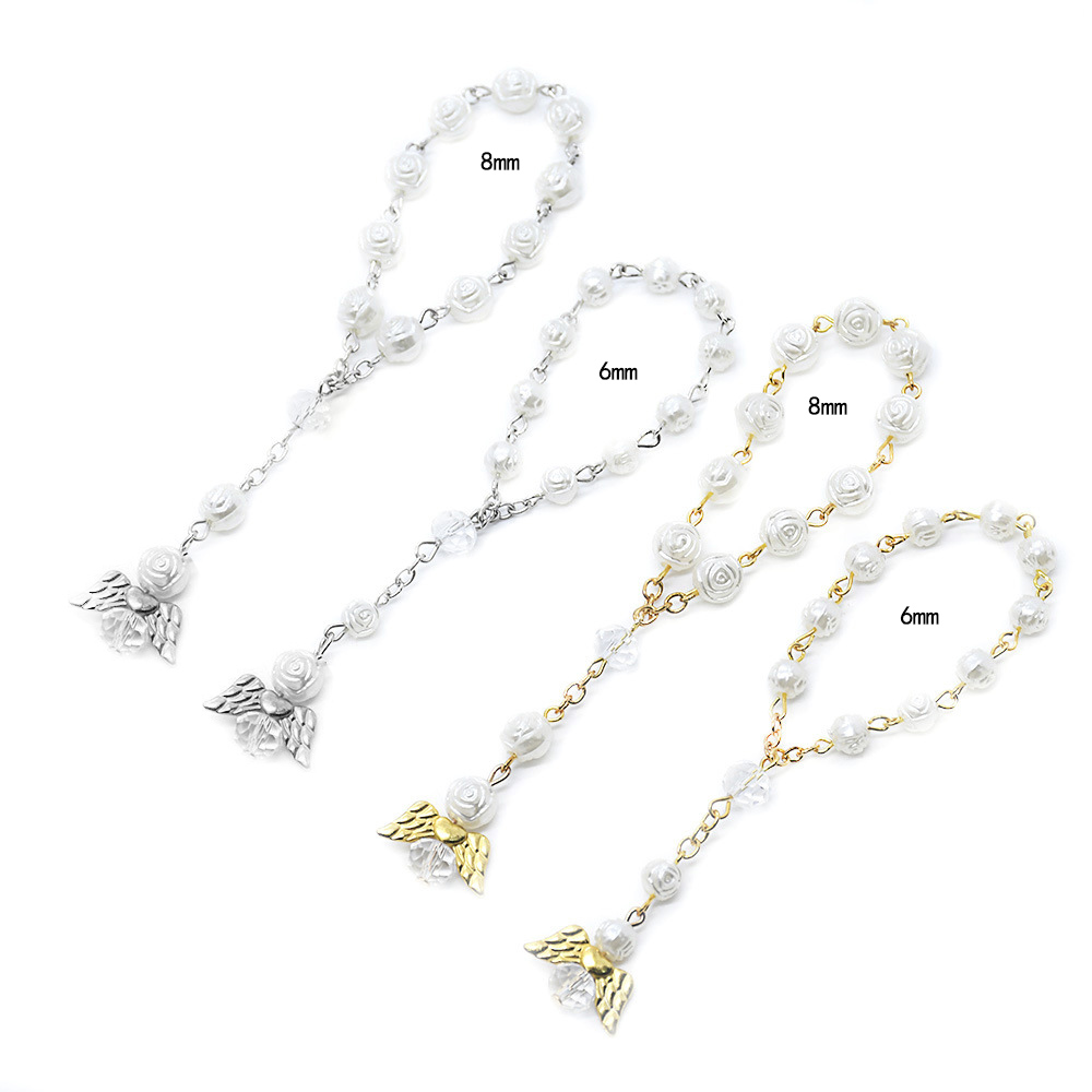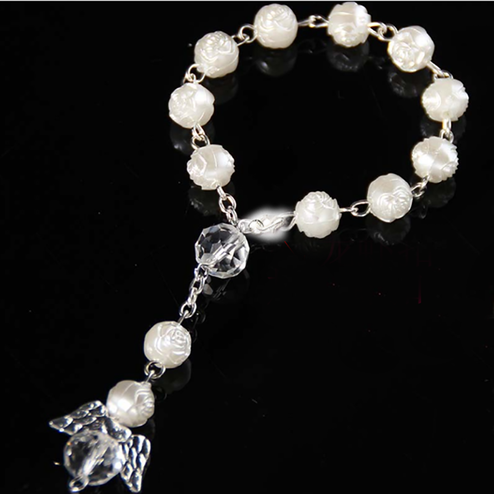 (金)天使翅膀洗礼珠念珠手链玫瑰花婚礼爱心手串珠串礼品赠品
